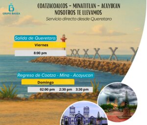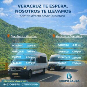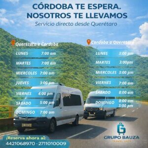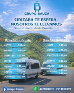 Bienvenido a Grupo Bauza. Contamos con viajes a | Orizaba | Cordoba | Poza Rica | Xalapa | Veracruz | Coatzacoalcos | Minatitlan | Acayucan Planea tu viaje sencillo o redondo Viaja con la mejor calidad y seguridad Viaja seguro, cómodo y en confianza Viajes a las mejores zonas de Veracruz Destinos Acayucan Coatzacoalcos Cordoba Minatitlan Orizaba Poza Rica Xalapa Horarios Poza RicaVeracruzCordobaOrizabaCoatza – Mina – AcayucanXalapa Poza Rica Veracruz Cordoba Orizaba Coatza – Mina – Acayucan ¿Qué nos hace diferentes? Conexiones USB Carga tu dispositivo móvil durante tu viaje. Seguro de viajero Viaja tranquilo con nuestro seguro de viajero en todas tus rutas. Unidades Nuestras unidades son cómodas y equipadas para una mejor experiencia. Operadores Nuestros operadores están capacitados y certificados para nuestros servicios. Practicidad Reserva tu lugar con tarjeta de Crédito/Débito o transferencia. Selección de asiento Reserva tu lugar desde la comodidad de tu hogar.